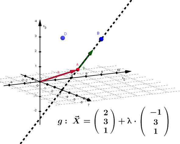Mit Hilfe der sogenannten Punktprobe werden wir festlegen, ob ein Punkt auf der Geraden liegt oder nicht.