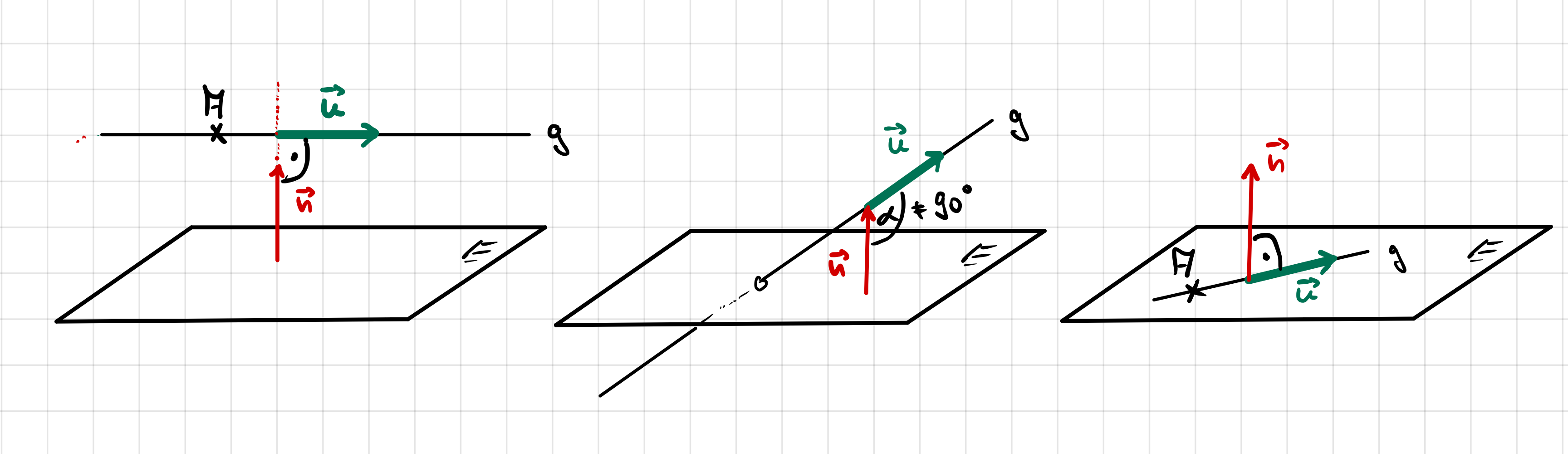 \(\vec{u} \circ \vec{n} = 0\) und der Aufpunkt A der Geraden g liegt nicht in E | \(\vec{u} \circ \vec{n} \neq 0\) | \(\vec{u} \circ \vec{n} = 0\) und der Aufpunkt A der Geraden g liegt in E |