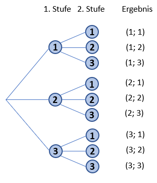 Zufallsexperimente können aus einer Folge von einfachen einfachen Zufallsexperimenten bestehen, die in einer vorgegebenen Reihenfolge ablaufen.