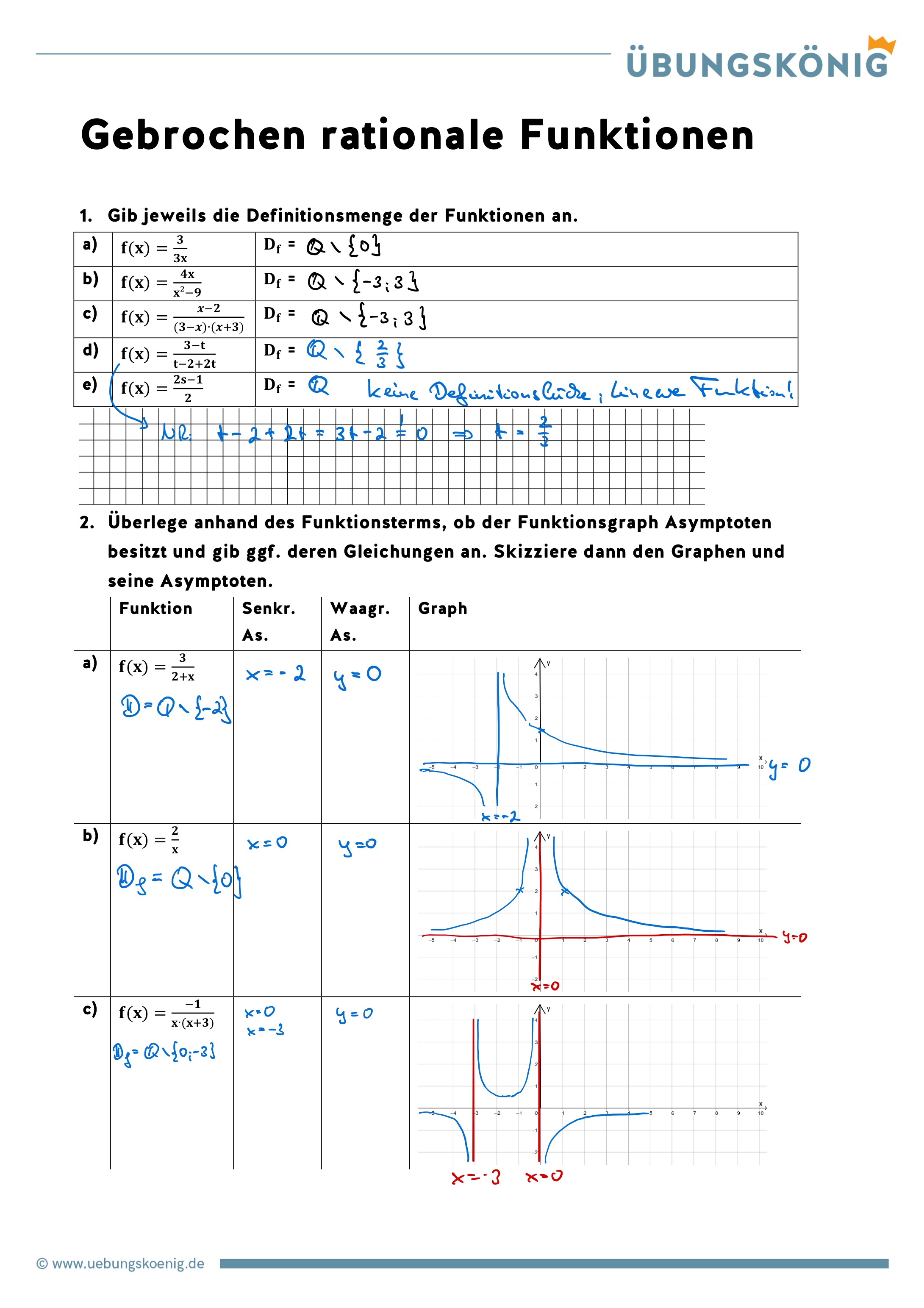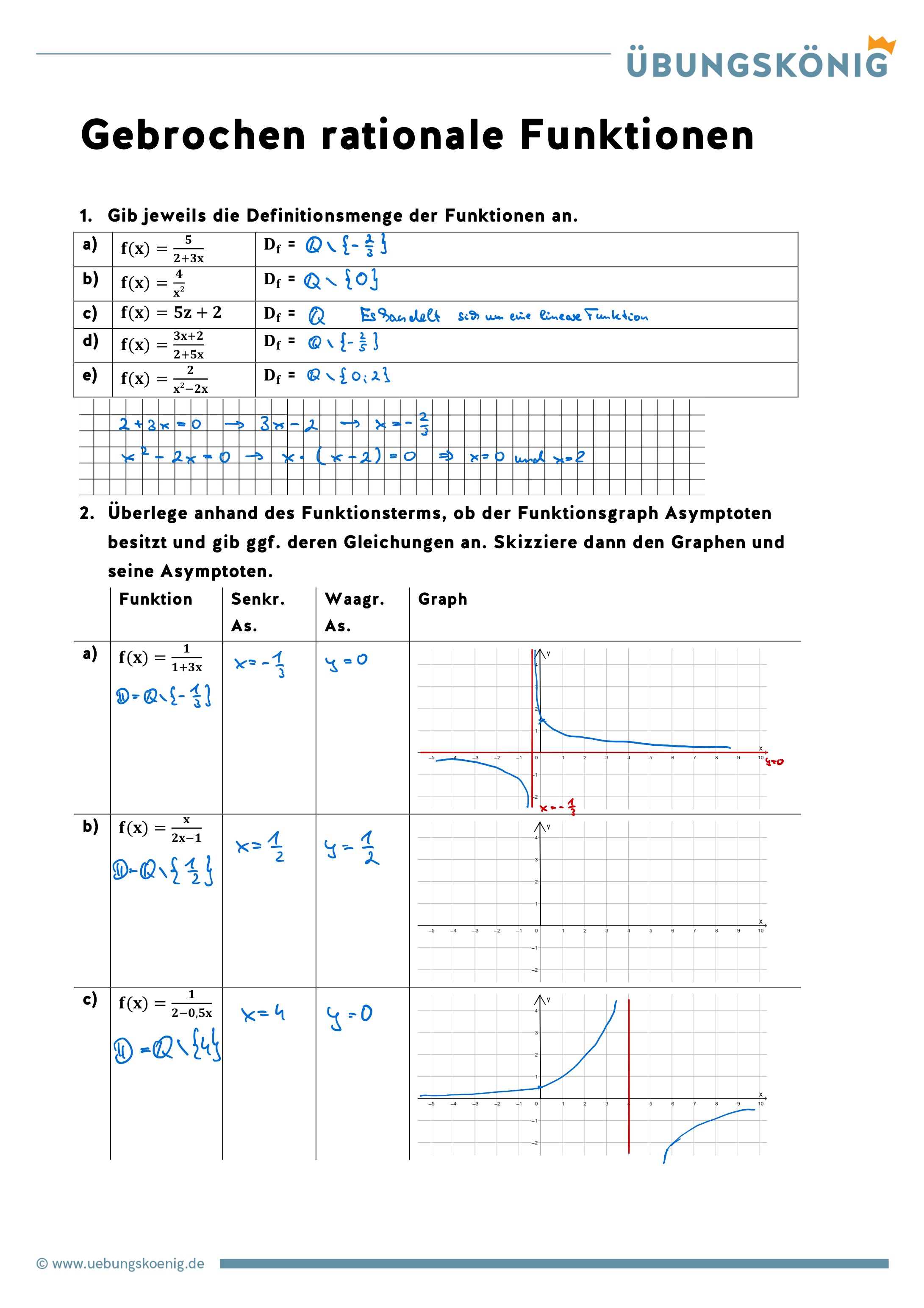 Gebrochen rationale Funktionen haben nicht immer die x-Achse, also \(y=0\) als waagerechte Asymptote, wie das folgende Beispiel zeigt: