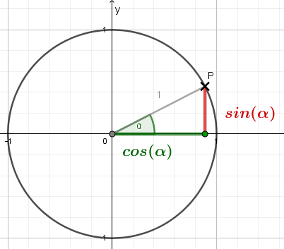 und \(cos(\alpha)\) bilden ein rechtwinkliges Dreieck,
