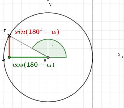 \(\small \sin(180°-\alpha)=sin(\alpha)\) \(\small\cos(180°-\alpha)=-cos(\alpha)\) |