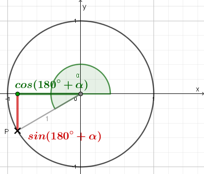 | \(\small \sin(180°+\alpha)=-sin(\alpha)\) \(\small\cos(180°+\alpha)=-cos(\alpha)\) |