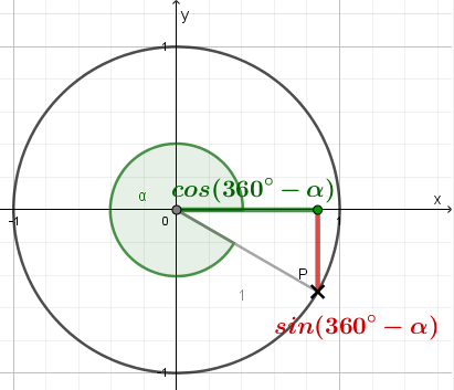 \(\small \sin(360°-\alpha)=sin(-\alpha)\) \(\small \cos(360°-\alpha)=cos(\alpha)\) |