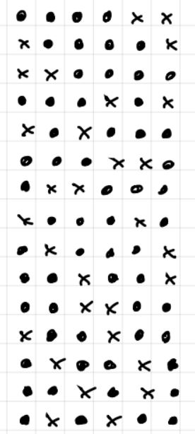 Die Abbildung zeigt alle 20 möglichen Trefferbilder